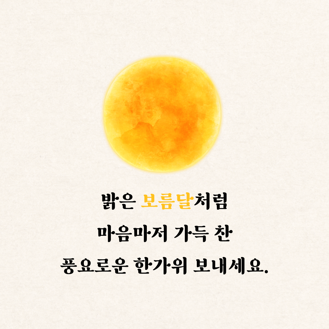 보름달처럼 마음마저 가득 찬 풍요로운 추석 보내시길 기원해요.