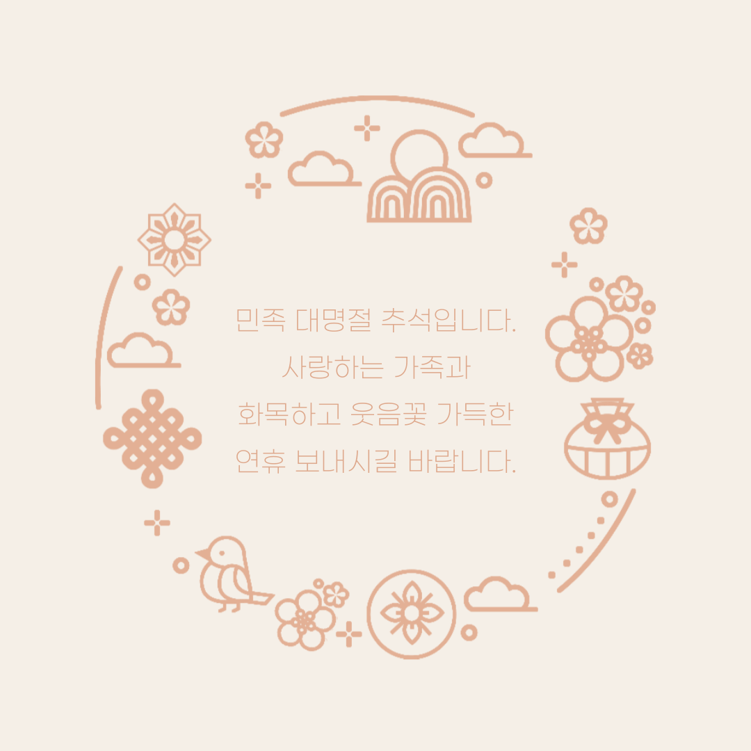 늘 곁에서 한결같은 성원 감사드리며, 더욱더 풍성한 한가위 명절 되시길 바랄게요. 감사합니다.