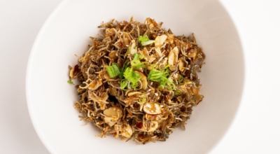 참기름을 넣고 통깨를 뿌리고 섞어 마무리해요. 설탕이나 물엿보다 올리고당을 쓰면 프리바이오틱스가 많아 장건강에도 더 좋다고 해요. 이렇게 만들면 멸치는 바삭하게 볶아 지면서도 딱딱하게 굳지 않는 멸치볶음이 됩니다.