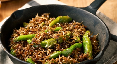 간장은 볶음 간장을 쓰면 더 향이 좋습니다. 멸치와 꽈리고추를 넣고 동반해 볶아줍니다. 꽈리고추가 적당히 익으면 올리고당을 넣고 섞은 다음 불을 끕니다. 올리고당을 넣고 불에 오래 볶으면 멸치가 딱딱해져요. 올리고당을 넣은 후엔 섞고 불을 바로 끄는 것이 좋아요.