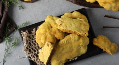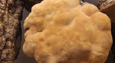 표면은 검은빛을 띤 갈색의 고리 홈이 나 있으며 가로와 세로로 등이 갈라집니다. 가장자리는 선명한 노란색이고 아랫면은 황갈색이며 살도 황갈색입니다. 해를 거듭해서 자라므로 나무의 나이테와 비슷한 경계선이 있어 이를 보고 버섯의 나이를 계산하게 되어요.