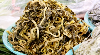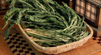 식용을 위해 무청을 말린 것. ‘시래기’라는 이름은 ‘쓰레기’에서 유래했다는 설이 있는데, 김장 등을 끝내고 남은 무청을 이용해서 만들기 때문이죠. 본래는 무청이나 배춧잎을 말린 것을 뜻하는데, 배춧잎 말린 것을 ‘우거지’라고 부르면서 시래기는 자연히 무청을 말린 것을 의미하게 됐어요. 채소의 부산물에서 나온 부분이라서 가격이 굉장히 저렴한 반면 영양가는 아주 높다는 장점이 있어요. 담백하고 고소한 맛과 연한 씹는 맛을 가지고 있답니다. 영양 면에서는 섬유질과 비타민, 칼슘 등이 다양해서 변비완화와 독소배출, 골다공증 예방 등에 효능이 있으며, 콜레스테롤 수치를 줄여주는 물질로 고혈압에도 도움이 돼요.
