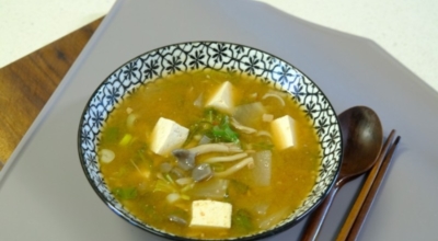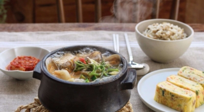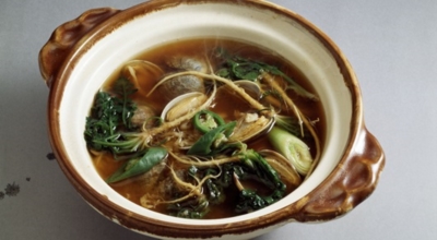 재료 : 된장 3큰술, 고추장 한 큰술, 바지락살 100g, 식용유 1큰술, 양파다짐 1 큰술, 간마늘 1작은술, 냉이 30g, 달래 10g, 애호박 20g, 두부 반모, 청양고추 1/3개, 고춧가루 한 큰술, 팽 이버섯 20g, 청주 한 큰술, 멸치육수용 30g, 무 3쪽, 청주 한 큰 술, 콩나물 10g, 양파 10g, 물 5컵, 간 마늘 2g, 소금 적당량, 후추 적당량