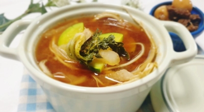 재료 : 쌀뜨물 1리터, 다시팩, 냉이 150g, 된장 1.5큰술, 양파 1/3개, 청양고추 1/3개, 홍고추 1/3개, 다진마늘 1/3큰술, 대파 1/4대