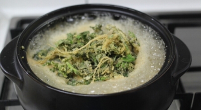 재료 : 쌀뜨물, 멸치가루, 된장, 냉이, 파, 청양고추, 간마늘