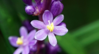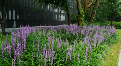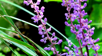 맥문동은 짧고 굵은 뿌리에서 잎이 무리 지어 자라며, 잎은 약 20~50CM 정도 자랍니다. 잎의 색은 짙은 녹색을 띠고 잔디 잎처럼 생겼습니다. 여름이 되면 맥문동의 보라색 꽃이 길쭉하게 자라납니돼요. 그리고 가을에는 동그란 열매가 점점 검게 익어가는 모습을 볼 수 있습니다.