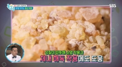 동의보감에 따르면 우리나라는 오래전부터 유향나무를 무릎의 염증과 통증을 다스리는 데 사용했는데 그 유향나무 껍질 속에 든 보스웰릭산이라는 성분이 염증 유발 물질의 생성을 억제해서 통증 완화 효과가 있다고 하네요.