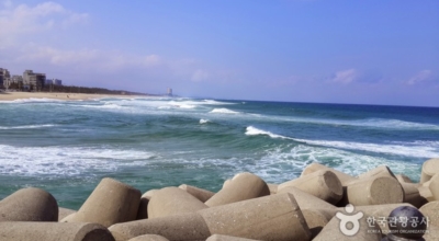 도깨비 촬영지로 널리 알려진 영진해변입니다. 드라마 도깨비 본 분들은 필수로 한번쯤 들려보실 수 밖에 없는 곳입니다. 드라마 떠올리면 배우 김고은님과 공유님이 꽃 들고 서로를 쳐다보던 장면이 있는데 그 장면이 주변 파도 일렁이던 모습도 있어서 명장면으로 꼽혔는데 그 장소가 바로 이곳이라고 하네요.