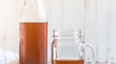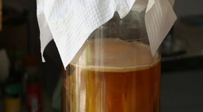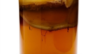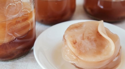 콤부차 재료: 물 1L , 홍차 60g, 설탕 70g, 스코비 한 개, 저온 살균된 사과식초 312ml
