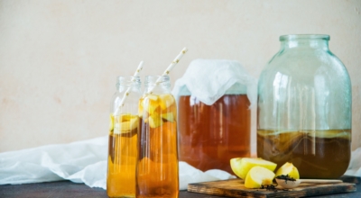 콤부차는 1~2주 동안의 발효 단계에서 탄산음료를 생성해요. 콤부차는 발효과정 중 차 안에 든 설탕이 스코비라는 것에 의해서 분해되어 프로바이오틱스라는 박테리아를 내보냅니다. 튼튼한 생활을 추구하는 사람들이 많이 늘어난 요즘, 전통적인 차에 이어 각광 받는 것이 바로 이 콤부차이예요. 콤부차의 맛을 살짝 표현하자면 시큼하고 신맛이 난다고 할 수 있답니다.