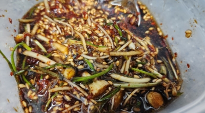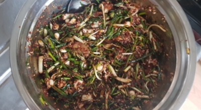 재료 : 달래 150g, 진간장 1컵, 설탕 1 큰술, 물엿 1 큰술, 고춧가루 한 큰술, 다진 홍고추 2개, 들기름 2 큰술, 통깨 반 컵, 다시마 물 1컵(다시마를 3시간 우려내 활용)