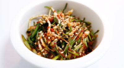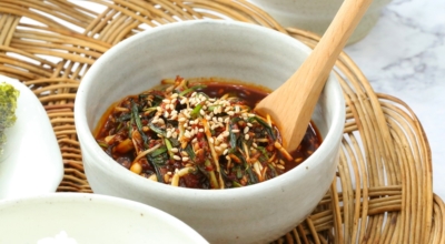 다시마 속 진액이 양념과 달래를 어우러지게 해준다고 합니다. 완료된 양념장에 달래를 넣고 잘 섞어줍니다. 그리고 전자레인지에 달래장을 넣고 1분 30초간 살짝 끓여 주세요. 그러면 달래 향이 훨씬 진해진다고 해요. 먹기 전에 잘 식혀주면, 맛있는 달래간장이 완성되어요.