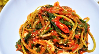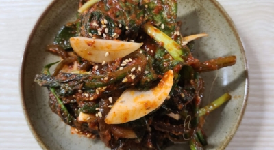 재료 : 머위 500g, 쪽파 5-6대, 부추 반 줌, 고춧가루 반 컵, 멸치액젓 3-4스푼, 다진 마늘 한 스푼, 매실액 또는 꿀배청