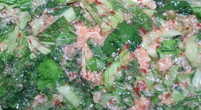 재료 : 얼갈이 1단(1.4kg) 열무 1단(2kg) 쪽파 180g 버물릴 때 사용할 양파 1/2개(180g)