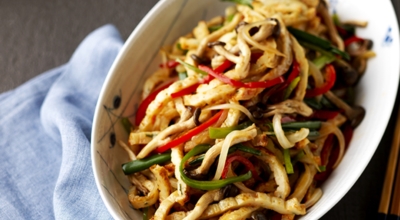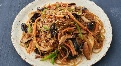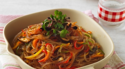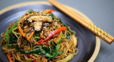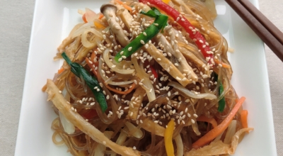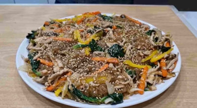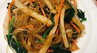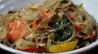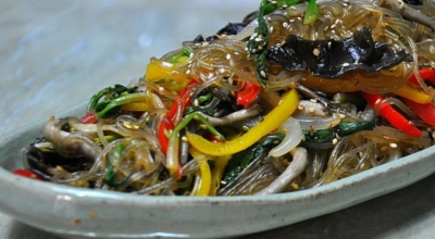 당근, 양파, 고기, 목이버섯, 시금치 (야채 색상의 조화와 영양분의 균형을 중시한다) 등을 기름으로 볶은 뒤 삶은 당면을 간장양념으로 같이 볶는 요리다. 마지막에 참기름을 넣고 버무려서 완성합니다. 쫄깃한 당면 씹는 맛과 야채와 고기 그리고 양념의 조화로 자극적이지 않아 많은 사랑을 받는 대한민국 대표 국민 요리입니다. 잔칫상, 명절상, 생일상에 수시로 올라가는 식품 중 하나입니다.