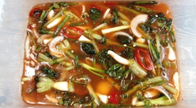준비한 열무와 청양고추를 넣고, 손으로 골고루 섞어줍니다. 손이 따끈한 물에 씻어서 깨끗하게 한 후, 체에 밭쳐 물기를 제거한 다음, 재료와 동반해 대접에 담아주어요. 담근 김치를 냉장고에 넣어서 2-3일간 숙성시켜줘요. 맛이 더해지기를 원한다면 더 오래 숙성시켜도 좋답니다. 숙성이 끝난 김치는 담그는 과정에서 물이 생기게 될 수 있으므로, 물기를 제거해준 후 냉장고에 보관하면 끝입니다.