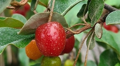 열매는 빨갛고 길쭉한 타원형으로 작은 대추나 방울토마토처럼 생겼으며 머리 부분에 체리처럼 꼭지가 달려있으며 보리수 열매의 맛은 신맛과 단맛, 떫은 맛을 모양쪽 모두고 있다고 하며, 여러가지 효험이 많아 오래전부터 약용으로도 활용되었다고 해요.