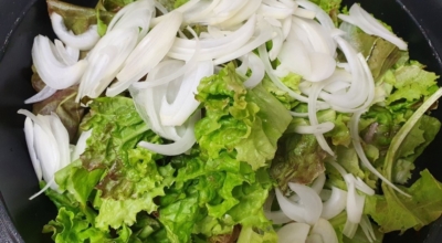 필요한 재료 :상추 250그램, 양파 1/4개, 대파 1/3줄기, 홍고추 하나