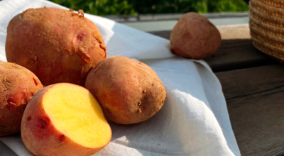 감자의 별명은 땅속의 사과입니다. 감자의 80%는 수분으로 이뤄져 있습니다. 게다가 갖가지 비타민과 미네랄도 가득한 채소입니다. 감자에 많이 포함된 비타민C는 피부 건강, 피로 회복, 면역력 강화에 도움이 된며 단백질 처리 과정에 중요시되는 역할을 하는 비타민B6와 뼈와 세포 건강을 유지하는 마그네슘도 함유하고 있답니다.