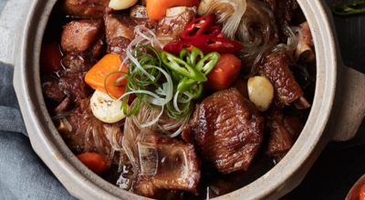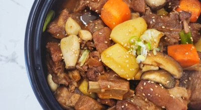 이후 뚝배기에 덮개를 덮어준 후, 낮은 불로 조절하여 40분에서 1시간 정도간 뚝배기 안에서 조리해줘요. 이렇게 뚝배기에서 조리한 백종원 돼지갈비찜은, 푹신하게 무르리게 조리되어 부드럽고 담백한 맛이 일품입니다.