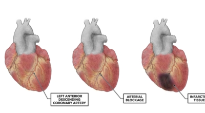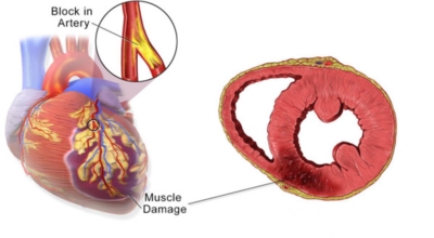 심장에는 3개의 심장 혈관이 있으며 이를 통해 산소와 영양을 받습니다. 이 3개의 관상동맥중 한 개라도 혈전이나 혈관의 빠른 수축에 의해 막히는 경우 심장에 산소와 영양 공급이 줄어들며 근육이나 조직, 세포가 죽는 상황이 되는데 이를 심근경색이라고 하네요. 즉 심장과 연결된 혈관이 막혀서 심장으로 피가 가지 못해 심장에 이상이 발생되는 것을 해요.